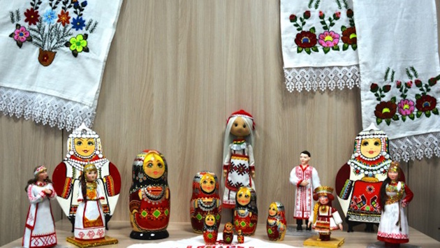 Женщины слепили кукол – молодую пару – чувашских девушку и юношу, одежда которых украшена национальной вышивкой, исполненной в технике «гладью», а также ярких расписных матрешек в русском и чувашском стиле.