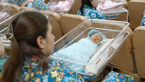 «Дом, где рождается счастье» – так сотрудники областного перинатального центра называют своё учреждение. За неполный год в Курской области родилось 5800 малышей, из них 3600 – в стенах центра. Ежегодно эта цифра превышает значение в 4000 новорождённых, а сотрудники учреждения делают всё возможное, чтобы поддержать матерей, сообщила главный врач Маргарита Антюхина. Уже традиционно в канун Дня матери в областном перинатальном центре чествуют тех, кто стал родителем всего за пару дней до праздника. В этом году первые документы для новорождённых 16 курянок получили из рук губернатора Александра Хинштейна. – Самое важное событие для любой женщины – это рождение ребёнка. Для кого-то это первенец, а для кого-то второй или третий. Но какой бы ни был ребёнок по счёту, он всё равно будет любимым и счастливым. Помню, какими были мои малыши при рождении, для любого родителя это буря эмоций, – сказал Александр Хинштейн. – Сегодня мы вручаем этим крохам их первый документ, который даёт им гордое название гражданин Российской Федерации. В преддверии Дня матери я хочу поздравить всех мам с праздником. Для любого человека нет ничего важнее его родителей, его мамы. Цените это. Свидетельство о рождении своего ребёнка сегодня получила и уроженка Суджанского района Валерия Гукова. Для 19-летней курянки это первый ребёнок, дочь назвали Евгенией. – Я подозревала, что у меня будет девочка, она и показалась на первом скрининге. Пока сложно сказать, что значит быть мамой, нужно привыкнуть к новому статусу. Чувства очень смешанные после первых родов: было и больно, и грустно, и весело. Женя капризничает, и достаточно активно, характер как у моего мужа, – улыбается Валерия. – Мы с мужем уже приобрели дом по жилищному сертификату, успели оформить детскую комнату нашей дочери, ждём возвращения домой. А вот Светлана Ишутина стала матерью в пятый раз полтора года назад, в канун праздника она также получает поздравления, в том числе и от коллег. Уже несколько лет курянка трудится санитаркой в отделении новорождённых ОПЦ. – Самому старшему сыну 25 лет, а младшему полтора года. У меня четверо сыновей и одна дочь. Помню, когда забеременела первым ребёнком, то сразу по материнским ощущениям поняла, что у меня будет сын. Я его ещё тогда назвала Артёмом, – говорит Светлана. Сейчас Артём служит в зоне специальной военной операции. Молодой человек служил по контракту, а за пару месяцев до его окончания началась СВО. Артём решил продолжить службу. – Месяц назад у Артёма родился сын, а у меня внук, его назвали Мироном, – делится женщина. – Материнские чувства ни с чем не сравнить. В Курской области продолжают оставаться популярными традиционные русские имена. Для мальчиков: Михаил, Александр, Иван, Дмитрий, Тимофей, а для девочек – Мария, София, Варвара, Анна, Василиса. В преддверии Дня матери регистрируют имена: Игнат, Даниил, Марк, Матвей, Ярослав, Евгения, Есения. Ирина СИДОРЕНКО Фото автора