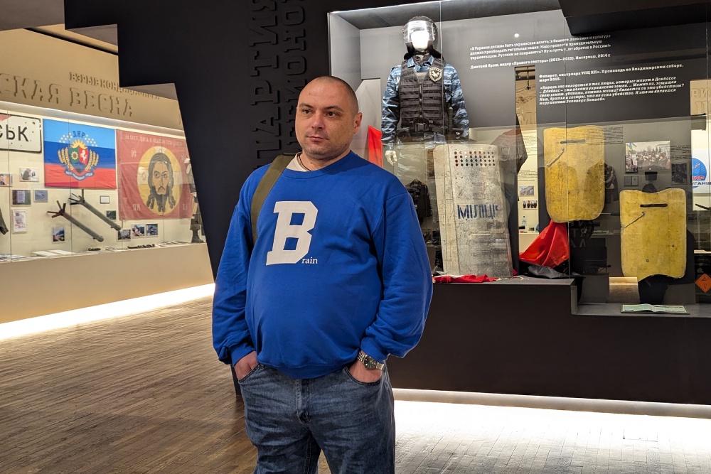- На "вильной Украйне" молодости не было, так как мотало в поисках лучшей доли по всей стране. Работал охранником супермаркета в Днепропетровске, электриком в Киеве, и когда к власти пришли фашисты, вернулся в Луганск. Устроился на завод, но проработал всего лишь одну смену, ибо начался геноцид Донбасса. Вооруженные банды люмпенов-западенцев рвались грабить нашу Луганщину. Вместе с другими рабочими вышел на пикет, соорудили баррикады. Батюшка из церкви принес нам дрова, чтобы могли чай вскипятить, и пускал погреться в храм - холодная весна была. С голыми руками мы пошли на автоматчиков и победили, - рассказывает герой по пути в краеведческий музей Луганска, где в зале Крымской весны ему знаком каждый предмет. С этими листовками и транспарантами он боролся за счастье жителей Донбасса.