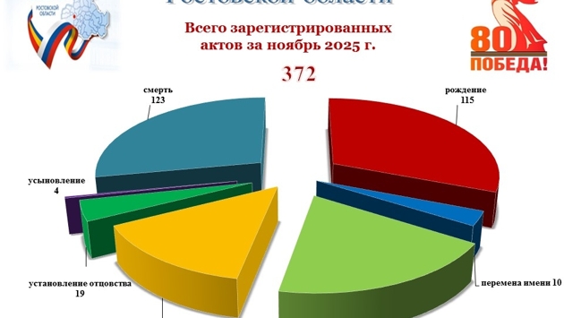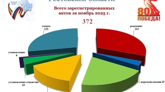 Ростовская область, 2 декабря 2025, DON24.RU. В Батайске по итогам ноября 2025 года зарегистрирована естественная убыль населения. Об этом сообщает местный загс, опубликовав свежие данные в своих социальных сетях. Согласно инфографике, в ноябре в городе родилось 115 детей, тогда как умерли 123 человека – на восемь больше. При этом семейная статистика выглядит позитивнее: число заключенных браков превысило число разводов – 56 против 48. Загс публикует подобные показатели ежемесячно, в октябре 2025 года смертность также превысила рождаемость. Количество заключенных браков также было выше числа разводов.