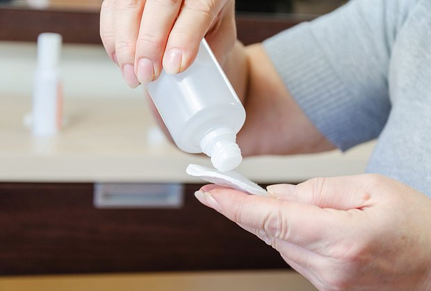 Нанесите несколько капель эфирного масла на четыре ватных диска. Распределите по два диска внутри каждой пары обуви — в области носка и пятки. Оставьте пропитанные диски в обуви не менее чем на 10 часов. Альтернативой дискам могут стать мешочки с сухой лавандой.