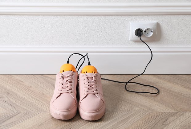Если смены обуви у вас нет, стоит приобрести специальную сушилку. Устройство работает от электричества, нагревательные элементы помещают внутрь ботинка. Многие современные модели оснащены УФ-лампой для дезинфекции.