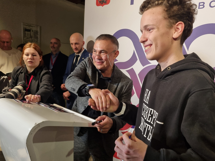 Перед началом пленарной сессии с молодежью встретился абсолютный чемпион мира среди профессионалов по боксу Константин Цзю. Ребята, стоящие в очереди к нему за автографом, говорили о том, что люди, которые добились таких высот в спорте, как Константин Цзю, заражают их своим духом победителя и настраивают на преодоление трудностей в жизни.
