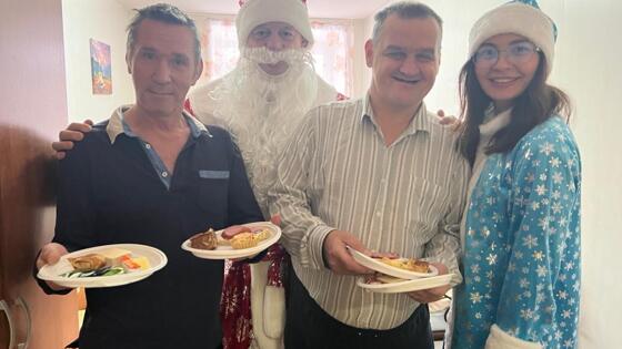 Новый год – время чудес в любом возрасте. И если дома больные люди могут получить теплое поздравление в кругу родных и близких, то в интернатах стараются создать атмосферу праздника его сотрудники, а также волонтеры. В преддверии Нового года «Служба защиты прав» и «Регион заботы» при поддержке Народного фронта проводят в психоневрологических интернатах региона акцию «Тележка радости». Корреспондент сайта pravda-nn.ru побывала в Борском психоневрологическом интернате и узнала, как волонтеры поздравляют его подопечных. Спасибо, очень вкусно! — Петр Иванович, здравствуйте! Можно зайти с подарками? — басит Дед Мороз, роль которого исполняет депутат «Единой России» Алексей Голубев. — Мы на санях с севера приехали, снега привезли вам. Приятного аппетита, здоровья и хорошего настроения. Больше гуляйте! – Какой салатик хотите — оливье и крабовый? — потчует проживающих Снегурочка, она же сотрудница «Региона Заботы». — Бутербродик с сальцем берите — сало домашнее, наши волонтеры сами коптили. Едет нагруженная разносолами тележка по коридорам интерната дальше, позвякивает. Подпрыгивают на поворотах тарелки с тарталетками и бутербродами с вкусно пахнущей копченой колбаской, конфетками и блинчиками с вкусными начинками. Тем, у кого диабет, вместо сладкого – томатный сок и пастила без сахара. С шутками-прибаутками заходят Дед Мороз со Снегурочкой в каждую комнату: «Как вы себя вели в этом году? Делали ли зарядку, выходили ли на прогулку?». Прояснятся лица женщин и мужчин, улыбаются, отвечают с юмором, благодарят.Комнатки небольшие, но очень чистенькие, уютные с видом на заснеженные березы – словно по заказу, природа решила порадовать в этот день праздничным снежком. Живут в них чаще по двое, реже по одному. Есть и семейные пары – познакомились в интернате, решили создать семью, получили комнату. В комнате № 50 знакомимся с 73-летней Еленой Викторовной Ветохиной. Елена Викторовна всегда за работой — рисует картины по собственноручно разработанным чертежам, плетет макраме. Вот и сейчас застаём её за работой — готовит новогодний подарок подругам, которые ее регулярно навещают. «Я закончила горьковский строительный институт, работала мастером на стройке, потом оператором газовой котельной, — рассказывает женщина. – В интернат попала около десяти лет назад – заболела, одной стало трудно. Люблю рукодельничать, постоянно осваиваю что-то новое, учусь. Спасибо, что зашли поздравить, очень приятно. И угощения вкусные». Таланты без границ А ещё в этот день в Борском ПНИ прошел инклюзивный фестиваль «Я — талант без границ», на котором выступили как проживающие интерната, так и приглашенные гости со всего региона. Фестиваль с этого года станет ежегодным. Кстати, это первый праздник в отремонтированном актовом зале Борского ПНИ. Мягкие кресла, современная сцена с прекрасным экраном, система кондиционирования – благодаря заботе регионального правительства теперь здесь есть все условия для проведения мероприятий любого уровня. С приветственным словом к гостям и участникам фестиваля обратился министр социальной политики Нижегородской области Игорь Седых. «Психоневрологические интернаты в регионе перестали быть закрытыми от общества – в них появляются волонтеры, проводятся активности, — рассказал министр. — Все больше людей из интернатов в