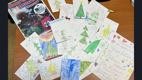 На переводую отправились пихтовые деревья, гирлянды, сладкие подарочные наборы и новогодние украшения. Не менее важной частью грузов стали детские письма и рискунки, с помощью которых новосибирские школьники выразили благодарность российским бойцам.