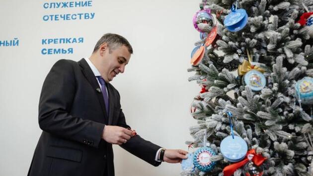 Хинштейн запустил «Ёлку желаний» в Курске, сняв первые 3 шара с детскими мечтами