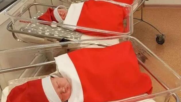 В центре рассказали, что новорожденных по-новогоднему нарядили — малыши спят в праздничных колпачках и одеяльцах.