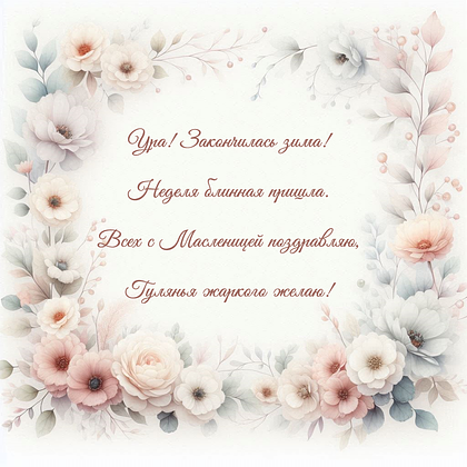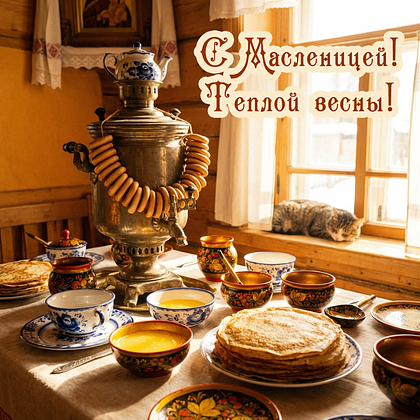 С Масленицей! Пусть эта неделя подарит ощущение легкости и обновления. Старинные традиции напомнят о ценности простых моментов. За столом соберутся родные и друзья. Впереди ждет весна с ее свежестью и вдохновением.