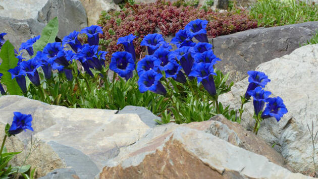 Сегодня я расскажу об удивительных цветах, которые любят высоту и холод. Наверное, поэтому их окраска необыкновенно яркая и чистая – абсолютно синего цвета, как небо в горах. Горечавки среди камней Помню свою первую встречу с горечавками. В пору студенческой юности, когда мы проходили практику на Байкале (я училась в Иркутском университете на биологическом факультете), у нас был организован поход в горы на хребет Хамар-Дабан. Окрестности Байкала полны самых необыкновенных редких, эндемичных, почти экзотических растений. Та картина до сих пор стоит у меня перед глазами: на фоне белых снежников бесподобно синие цветки – крупные бокалы, растущие словно сразу из земли. Это были горечавки крупноцветковые. А чуть поодаль розовые соцветия баданов, нежные белые цветочки дриады альпийской и кругом заросли кашкары – рододендрона золотистого, кусты которого сплошь покрыты огромными цветками лимонного оттенка. Наверное, именно с той поры я и полюбила горы. Горечавки и адонисы. Фото автора И хотя потом мне много приходилось бывать в Алтайских горах, кажется, что подобной красоты больше нигде не видела. Может, конечно, потому что это были мои первые горы. Я встречала разные виды горечавок в предгорной зоне Алтая, даже пробовала выкопать и перенести их в сад, но увы, они не прижились. Горечавка китайская украшенная во всей красе Ботаническое описание Горечавки (Gentiаna) принадлежат к семейству с таким же названием – Горечавковые. В их род входит около 400 видов разных трав и полукустарниковых растений. Русское название указывает на горький вкус некоторых частей горечавок, который обусловлен содержанием в них гликозидов. Латинское название они получили благодаря иллирийскому царю Гентию, во II в. до н. э. лечившему страшную болезнь чуму корневищами горечавки жёлтой. Горечавка жёлтая Большинство видов этого растения встречается в умеренном климате Северного полушария, но некоторые произрастают и в тропических широтах. Многие разновидности предпочитают экстремальные условия, растут в тундре и высоко в горах – это настоящие альпийцы. На территории нашей страны встречается около 90 видов, довольно много их в Сибири – примерно 35. Горечавки бывают разной высоты: от миниатюрных, вырастающих не выше 10 см, до весьма высокорослых (до 150 см). Они имеют толстые и короткие корни. На прямом стебле супротивно располагаются сидячие, обычно овальные, слегка заострённые простые листья. Цветки чаще одиночные, но бывают и в соцветиях. Их отличает воронковидный венчик с отогнутыми лепестками, как правило, их 5, реже 4. Горечавки часто путают с колокольчиками Иногда горечавки путают с колокольчиками из-за их цвета и схожей формы цветков. Чаще всего они имеют ярко-синюю или голубую окраску, но есть и фиолетовые, белые, жёлтые. Цветут разные виды в течение лета, есть среди них весенне- и осеннецветущие. Большинство видов горечавок обладает целебными свойствами. В народной медицине средства на основе этого растения применяют для лечения различных заболеваний ЖКТ, желчного пузыря, печени. Препараты из горечавки помогают при диатезе, анемии, и в целом эта трава признаётся как идеальное общеукрепляющее средство. Рассмотрим некоторые из самых распространённых видов. Горечавка легочная Горечавка легочная (Gentiana pneumonanthe) имеет широкий ареал распространения: вся территори