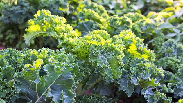 Выращивая овощи на своем огороде, дачники стремятся получить витаминный, экологически чистый урожай. Особой популярностью пользуется капуста белокочанная, немного реже на грядках встречается капуста цветная. Капуста кале Капуста кале Но заботясь о своем здоровье, огородники совершенно забывают о капусте кале. А ведь эта овощная культура, несмотря на свое «заморское» название, может прекрасно развиваться в нашей местности и к тому же во сто крат обгоняет своих капустных «родственников» по содержанию полезных веществ. Описание растения Кале относится к семейству Крестоцветные (Cruciferae) и нередко скрывается под другими именами – кейл, браунколь, брунколь, грюнколь или просто кудрявая капуста (Brassica oleracea var. sabellica). Но в отличие от своих капустных «сестриц» эта разновидность кочана не формирует, а отдает свой урожай в виде невероятно красивых курчавых листьев. Кале - листовая овощная культура (Фото с сайта delenka-club.ru) Кале — листовая овощная культура. Фото с сайта delenka-club.ru В зависимости от вида кале может представлять собой пышную листовую розетку либо развиваться в виде эффектной «пальмы», достигая порой высоты в 1 м. Казалось бы, такой красавице, которая может быть наряжена в ярко-зеленые, сизо-зеленые, темно-красные или фиолетовые одеяния, самое место в цветнике, ведь она может дать фору многим декоративным культурам. Капуста кале очень декоративна (Фото с сайта catalogdesign.ru) Капуста кале очень декоративна. Фото с сайта catalogdesign.ru Но эта культура ценится не только за эффектный наряд. Пожалуй, самое главное ее достоинство — это невероятно богатый химический состав сочных кудрявых листочков, которые при употреблении в пищу насыщают организм самыми разнообразными витаминами, минералами и биологически активными соединениями. Полезные свойства Эта листовая капуста занимает одно из первых мест среди продуктов растительного происхождения по количеству белков и может выступать прекрасной альтернативой мясу. Кроме того, она содержит 25 жизненно важных аминокислот, а содержание в ее листьях жирной кислоты Омега-3 приравнивается к количеству этого вещества в рыбных продуктах. Стакана свежеприготовленного смузи или тарелки салата из листьев брунколи будет достаточно, чтобы покрыть суточную потребность организма в витамине А. К нему в весомом количестве присоединяются ценные витамины группы В, РР, С, К, калий, магний, фосфор, цинк и селен, а также лютеин и зеаксантин. Свежие листья кале Свежие листья кале Отдельно стоит упомянуть о кальции, которого в листьях кудрявой капусты содержится столько же, сколько в молочных продуктах. И это при том, что в 100 г кале всего 50 ккал — она просто незаменима в диетическом питании. Смузи из йогурта и листьев кале Смузи из йогурта и листьев кале Чтобы получить максимальную пользу от употребления в пищу кудрявой капусты, ее листья в первую очередь нужно использовать в свежем виде. Также листья кале можно добавлять в супы, овощные рагу, готовить из них легкие гарниры для мяса и рыбы, начинки для пирогов, заготавливать на зиму (квасить, мариновать, сушить, замораживать). Как говорится, была бы фантазия и желание включить в рацион этот диетический и полезный продукт. Капуста кейл очень вкусна с яичницей Капуста кейл очень вкусна с яичницей От некоторых огородников можно услышать нелестные отзывы о вкусовых качес