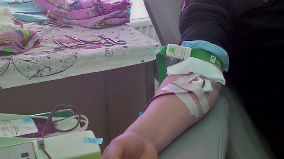 У полицейских и доноров общее призвание — спасать людей. Только делают они это по-разному. Одни защищают людей от худших человеческих проявлений, другие делятся частичкой своей жизни с другими. В обоих случаях речь о спасении жизней. Поэтому не удивительно, что полицейские первые в числе тех, кто спешат в пункты переливания крови в национальный день донора, который отмечают 20 апреля. По иронии судьбы праздничная дата часто выпадает на не приёмный день в пунктах переливания крови. Поэтому тематическую акцию в честь праздника проводят за несколько дней до праздника и после. В эти дни отделения полны желающих помочь нуждающимся людям и работниками бюджетной сферы. Остальные дни коридоры практически пустуют, но не в Ноябрьске. В городе на границе Ямала и Югры множество постоянных доноров. Среди них сотрудники Ноябрьского линейного отдела полиции. Каждый год, правоохранители участвуют в акции ко дню донора. 24 апреля 2018 года пятеро сотрудников Ноябрьского отдела Ново-Уренгойского ЛО МВД России на транспорте выделили время для доброго дела. Прямо с работы добровольцы отправились в отделение переливания крови. Инспектор направления исполнения административного законодательства Азат Альмухаметов, носитель редкой группы крови. У Азата Зиннятулловича 4 группа крови, запас этой группы крови в фондах станции переливания очень мал. Ведь её носителей встретишь не часто. Азат Альмухаметов участвует в акции ко дню донора только второй раз. Впервые инспектор сдал кровь 23 апреля 2015 года в компании более опытных доноров и, по совместительству, своих коллег в лице тёзок: Евгения Михайлова, оперуполномоченного направления экономической безопасности и противодействия коррупции, и Евгении Голенковской, следователя группы расследования преступлений. По заведённым правилам, полноценное кровное пожертвование в один день может сдать только постоянный донор. Остальные сначала сдадут кровь из пальца для проведения экспресс-теста и определения противопоказаний. Потом анализ крови из вены, и только потом, если всё в порядке, врачи назначат день для полноценного донорства. Так произошло у Азата Альмухаметова. В день акции его только подготовили к будущему донорству. День донорства несомненно настанет, ведь не так много людей действительно могут спасти чью-то жизнь. «В таких акциях нужно участвовать потому, что они помогают понять ценность жизни. Вспомнить про радость взаимопомощи и поучаствовать в действительно благородном деле. Когда я пришёл в первый раз, у меня не было ни страха, ни сомнений, потому что делаю доброе дело», — поделился своим мнением инспектор направления исполнения административного законодательства Ноябрьского отдела Ново-Уренгойского ЛО МВД России на транспорте Азат Альмухаметов. Азат Альмухаметов заполняет анкету для доноров. Это обязательная процедура, которую проходят все желающие сдать кровь. Анкетирование проходят все без исключения, даже почётные доноры Оперуполномоченный направления экономической безопасности и противодействия коррупции Евгений Михайлов — донор со стажем. В первый раз на станцию переливания крови он пришёл в октябре 2007 года с другом. В то время Евгений Михайлов ещё не работал в полиции и про донорство услышал в компании друзей. Один из приятелей рассказал про то, что можно сделать доброе