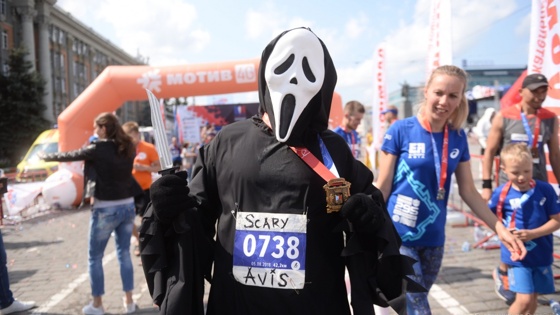 Самый запоминающийся участник марафона «Европа — Азия» — парень в костюме маньяка из фильма «Крик». В чёрном балахоне, перчатках, узнаваемой маске и с ножом в руках он пробежал все 42,2 километра. Мы пообщались с необычным бегуном. Его зовут Михаил Майоров, он из Казани, ему 31 год, есть жена и двое детей. Уже два года он бегает марафоны в необычных костюмах: Дарт Вейдер, Сейлор Мун, Курт Кобейн, Алкомен и Алкофея. А теперь вот — маньяк. — Это был уже девятый мой марафон в костюме. Пробежал его за 4 часа 46 минут. Это плохо, лучшее моё время — 3 часа 57 минут, — рассказал E1.RU Михаил. — Бежать в костюме — это капец тяжело. Самое тяжелое — то, что я никогда заранее не меряю костюм, заканчиваю его шить обычно в ночь перед забегом, времени не хватает. В этот раз костюм был готов за день, но все равно надел я его впервые перед стартом. Каждый раз бегу и думаю — в следующий раз так не сделаю! — Жарко в нём? — Да, было жарко, но самая большая проблема — отсутствие воздуха. Из-за этого очень темп падает, просто не бежится. Я снимал маску несколько раз, когда останавливался попить воду и подышать. Метров 50 проходил пешком и дальше бежал. Маска шаталась, елозила по всему лицу, я стер нос в кровь. Содрал одну булавку со стартового номера, заколол маску, чтобы она нормально сидела. Это такие мелкие неудобства, о которых не подумаешь, пока не наденешь костюм. — А почему заранее не продумать всё? — Потому что одна из моих отличительных черт — это повальное разгильдяйство. Вообще в Екатеринбурге должен был быть другой костюм, но он настолько сложный в изготовлении, что я его и на десять процентов не успел сделать. Буду готовить к следующему году. Это должен быть трансформер-алкоголик. — Зачем ты это всё вообще делаешь? — Потому что жить скучно! Я уже пять лет фрилансер. Работаю дома, отдыхаю дома. А так развлекаюсь. Я конструктор, делаю всякие железки, детали, занимаюсь 3D-принтерами. — Как близкие к этому относятся? — Им это нисколько не интересно, да и я особо не афиширую. Но костюм этот сшила мне жена, спасибо ей большое. А маску напечатал на 3D-принтере. — Какой костюм будет в следующий раз? — В следующий раз побегу в Самаре в костюме коня в пальто! Большой репортаж с марафона читайте здесь. В этой подборке — 20 лучших фото с забега. А экс-мэр Екатеринбурга Евгений Ройзман рассказал сегодня, что «ограбил» девушку на финише марафона.
