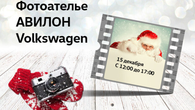 Как приятно долгими зимними вечерами, в кругу родных и близких, полистать семейный альбом, вспоминая лучшие моменты года… Мы уверены, что выбор автомобиля – тоже один из лучших моментов года и приглашаем вас в фотоателье АВИЛОН. 15 декабря с 12:00 до 17:00 наша новогодняя студия, коллекция масок и аксессуаров, а также профессиональный фотограф – к вашим услугам. Но это еще не все: Дед Мороз, призы и подарки, ароматный глинтвейн и новогодние пряники и, конечно же, новогоднее, специальное, выгодное предложение на каждый автомобиль, отмеченный значком «стоп-кадр». Ведь сейчас лучший момент в году для покупки новенького Volkswagen! Всегда Ваш, АВИЛОН