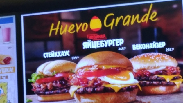 Смоленское управление Федеральной антимонопольной службы России (ФАС) оштрафовало сеть быстрого питания Burger King за рекламу на иностранном языке, которая, по мнению ведомства, имеет двойной смысл. «Действительно, постановлением УФАС по Смоленской области компания «Бургер кинг» оштрафована за рекламу с двойным смыслом. Штраф составил 100 тысяч рублей», — говорится в постановлении УФАС по Смоленской области, копия которого имеется в распоряжении «Интерфакса». В ведомстве уточнили, что нарушением признана фраза Huevo Grande, что в переводе с испанского значит «Большое яйцо». Ранее посетитель ресторана сети быстрого питания обратился в надзорный орган в связи с тем, что из-за отсутствия перевода надпись на одном из рекламных плакатов ввела его в заблуждение, а при прочтении в латинской транскрипции и вовсе посчитал ее оскорбительной и нецензурной. ООО «Бургер Рус» не согласно с доводами антимонопольной службы. По данным компании, надпись была направлена на формирование интереса к новинке в меню — бургеру, в составе которого было яйцо. В настоящее время выражение из меню исключено.