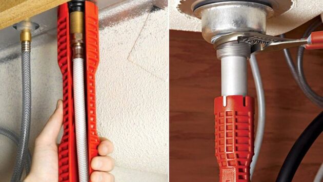 Как сказал немецкий конструктор, основатель компании Porsche Фердинанд Порше: «Если хочешь сделать что-то хорошо, сделай это сам». Но иногда сделать дома что-то самостоятельно, без помощи профессионального мастера, нам мешает только отсутствие специальных инструментов. Например, установить новую раковину или смеситель — не такая уж сложная работа, но осуществить это, действуя обычным разводным ключом в довольно ограниченном пространстве, бывает все же непросто. Легко справиться с такой задачей поможет оригинальный набор ключей Ridgid Faucet & Sink, который также пригодится и при других ремонтных работах в доме. Комплект предназначен для монтажа шлангов подачи горячей и холодной воды, резьбовых фитингов и кранов. Основной элемент в нем — рукоятка в виде продолговатого захвата с двумя рабочими концами. Разрез вдоль пластикового корпуса служит для того, чтобы закручиваемые трубки свободно помещались внутрь и не мешали работе. В комплекте к рукоятке поставляются специальные вставки для выполнения разнообразных операций. Так, для обхвата различных гаек предусмотрен фигурный сердечник, вставляемый в корпус инструмента. Другая деталь позволяет присоединить к нему отвертку, которая послужит дополнительным рычагом при работах, требующих большего усилия. Рукоятка массой 350 г выполнена из особо прочного пластика с фактурной поверхностью, предотвращающей скольжение инструмента в руке. А все насадки сделаны из высококачественной никель-хромированной стали. Цена — около 1000 руб.