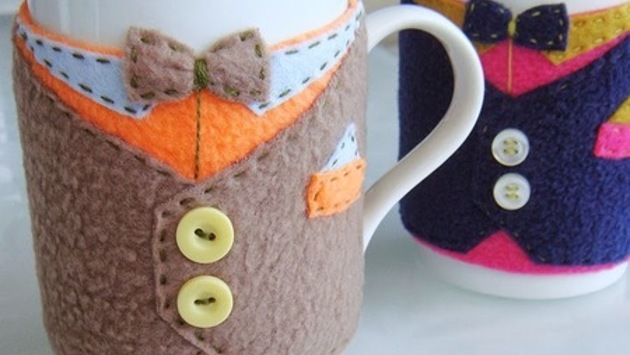 Подарки ко Дню Защитника Отечества можно приобрести в магазине, а можно изготовить своими руками, например из фетра. Фетр позволит сделать красивые и практичные поделки на 23 февраля, а работать с ним смогут даже дети. Сюрприз, сделанный самостоятельно, доставит множество приятных минут вам и вашим близким. Оригинальный футляр для подарка Преподнести мужчине заранее купленный подарок можно в красивой и оригинальной упаковке, сделанной своими руками. Красочная оберточная бумага больше подходит для дам, поэтому в данном мастер-классе мы рассмотрим необычную поделку из фетра на 23 февраля, сделанную своими руками. Инструменты и материалы: высокая коробка из-под чипсов; черный фетр лист А4; белый фетр лист А4; красный фетр; термоклей; утюг; пуговицы; зубочистка; черная акриловая краска. yandex_ad_1 Последовательность действий: Открываем коробочку с чипсами и удаляем содержимое. От листа белого фетра отрезаем 5 см, а лист черного фетра уменьшаем на 2 см. Замеры могут немного отличаться, все зависит от размеров баночки. Оборачиваем будущий футляр белым фетром, оставляя внизу небольшую полоску. Затем приклеиваем материал к баночке, используя термоклей. Черный фетр будет имитировать смокинг, поэтому верх должен быть декорирован отворотами. Загибаем верхние уголки листа внутрь и проглаживаем горячим утюгом. Поверх белого фетра приклеиваем черный материал, отступив несколько сантиметров от края баночки. На линии сгиба черного фетра приклеиваем пуговицы, достаточно будет трех штучек. Из красного фетра вырезаем небольшую полоску, размером 3х8 см. Складываем полоску посередине и фиксируем клеем и кусочком красного фетра. Получившийся бантик приклеиваем на верхней части смокинга. С помощью зубочистки и черной краски рисуем на белом фетре небольшие точечки, имитирующие пуговицы на рубашке. Из черного фетра вырезаем кружок по размеру крышки от баночки и полоску размером 3х12 см. Приклеиваем материал к верхней части крышки. Полоску сворачиваем и склеиваем концы. Получившуюся фигуру приклеиваем в центре крышки. Закрываем верх цилиндра небольшим кружочком из черного фетра. Из черного фетра вырезаем два небольших кармана и приклеиваем их к смокингу. Упаковка для подарка готова, осталось вложить в нее приготовленный сюрприз и закрыть крышку. В карман смокинга можно положить небольшую записку или открытку с поздравлением. Изготавливая поделки на 23 февраля из фетра своими руками, не забывайте добавлять декоративные элементы. Они отразят ваш индивидуальный стиль и сделают сувенир уникальным. include_poll2081 Сюрприз в военной форме Поддержать основную тематику праздника и сделать своему мужчине оригинальный подарок, поможет этот простой мастер-класс с пошаговыми фото. Для изготовления поделки на 23 февраля из фетра можно подобрать любой цвет военной формы, сделать индивидуальные погоны и звание. Для декора понадобятся простые и доступные материалы, среди которых важное место занимает фетр. yandex_ad_2 За основу поделки берется небольшая бутылка подходящей формы, можно использовать дорогие алкогольные напитки. Инструменты и материалы: бутылка; плотный синий фетр; черный фетр; тонкая голубая ленточка; золотистые пуговицы и звезды; термоклей; золотистая нить. Последовательность действий: Вырезаем четыре одинаковые заготовки для погон. По размеру они долж