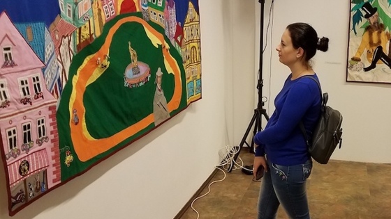 В залах галереи искусств Зураба Церетели на Пречистенке 19-го февраля открылась выставка члена-корреспондента Российской Академии Художеств (декоративное искусство) Нины Будённой «Ковры-фантазии». А я назвал бы попроще и поточнее - «Фантазии Нины Будённой». Выставка необычна. Необычна по стилю, духу и настроению. В залах можно было услышать рассуждения о направлениях творчества художника. Упоминались традиции и элементы народного лубка, наивного искусства, фольклора и ещё целого ряда направлений, которые не имеют чётко сформулированного названия и определенных между собой границ, которые могут сливаться и автономно развиваться. Я не искусствовед и не художественный критик. Я обыватель и простой тот самый наивный зритель, который смотрит по сторонам широко открытыми глазами. Поэтому не смею делать какие-либо сравнения с творчеством Нико Пиросмани или Кати Медведевой, проводить параллели с работами Татьяны Мавриной или Казимира Малевича. Это выставка – художественная экспозиция и одновременно экспозиция текстиля. Но я почувствовал уникальность представленных произведений, увидел авторский стиль, распознаваемый и узнаваемый. Его отличает смелость в выборе материалов и приёмов, гротеск и намеренная деформация изображаемых объектов, выделение тематически главного более крупным изображением и материалом. Нина Будённая выработала свой стиль, нашла свою тональность, свой эмоциональный тонус. И она развивается, совершенствуется в рамках своего стиля и своего почерка. Её искусство не отягощено штампами и «опытом веков», но оно трудоёмко и затратно. Пойди попробуй найти и подобрать в Москве ткани нужной фактуры, качества и цветовой гаммы! Но она находит и применяет очень много приёмов. Профессиональная деятельность журналиста с изобразительным уклоном Нины Будённой наложила отпечаток на её творчество - это взгляд на мир глазами прекрасного рассказчик с хрипотцой в голосе и улыбкой на устах. На определенном этапе жизни она обратилась к искусству текстиля и начала повествование своего восприятия окружающего её пространства удобным и доступным языком. И если подбирать для него теги, то это будут «сочинитель», «фантазёр», «оптимист», «юмор», «фантасмагория». А подтолкнули к этому виду творчества крестьянские корни кавалера Георгиевского креста всех степеней, маршала Семёна Михайловича Будённого. Дочь всегда мечтала иметь свой настоящий домик в деревне с сенями, завалинкой и банькой. И вот на стыке веков мечта материализовалась в виде бревенчатой избы-пятистенки в убогой, но большой деревне на озере Волго, последнем в цепи Верхневолжских озёр, из которых вытекает великая река. Захотелось оформить её в «деревенском» стиле, да и прикрыть некоторую «срамоту» старых стен. Чем? Расписными коврами на клеёнке, конечно же, которые раньше были популярны в деревнях. Гуси-лебеди, медведи, кошечки, блондинки в грудями и красными губами, русалки…. Ну, в общем, «ты, парниша, торопись, покупай-ка за трёху живопИсь!» Но уже на первом рынке в Осташкове выяснилось, что данный вид искусства умер. Печаль сняла дочь Маша, которая хорошо поставленным артистическим голосом (недаром что ль дочь народного артиста РФ Михаила Державина) сказала: «Ты что, мать, не можешь сама нарисовать Русалку!? Не верю! Н-е-в-е-р-ю!» Так в 2001 году появился первый ковё