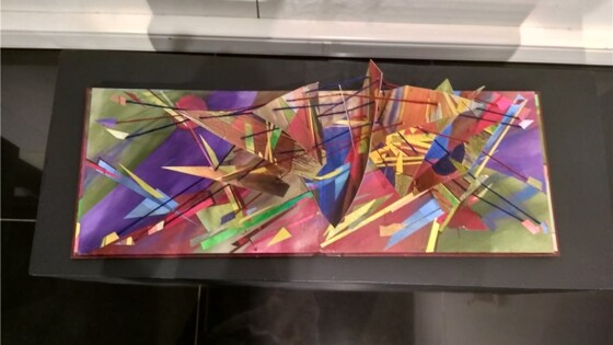 Проект возник несколько лет назад. В этом году художники решили сыграть "в библиотеки". Художник Дмитрий Бабенко представил на выставке "бесконечный" проект "Утопические библиотеки". По словам Дмитрия, проект начинался со штампов несуществующих библиотек, которые предназначались для Книги Художника. Любой посетитель выставки может попробовать поставить штамп, или несколько штампов, самых разных выдуманных библиотек: "Библиотеки Излингтонских Гранильщиков бриллиантов", "Библиотеки музея тантамаресок в посёлке Залукокоаже", "Библиотеки союза за самобытность и самодостаточность". Каждой библиотеке Бабенко придумал не только штамп, но и историю. "Библиотека Ойкумены", например, находится "за пределами рационального мировосприятия" и состоит исключительно из каталогов, атласов, гербариев и пособий. Штампы Дмитрия Бабенко. Фото автора В том же зале галереи в игру вступил Сергей Якунин с проектом "кабинет-библиотека Даниила Хармса". Художник представил приспособления для изучения ноо- и биосферы Николая Заболоцкого — ближайшего друга Хармса. Также здесь представлен вертикальный сундук Хармса для наблюдения за борьбой жизни со смертью. В нём можно закрыться и помедитировать. Около сундука художник поместил стол и некоторые вещи, принадлежавшие Хармсу: книгу поэм, сделанную из упаковочного картона, в которой можно обнаружить революционный стих "Петра Яшкина – коммуниста": Мы бежали как сажени на последнее сраженье наши пики притупились мы сидели у костра реки сохли под ногою мы кричали: мы нагоним! плечи дурые высоки морда белая востра Вертикальный сундук Хармса. Фото автора Во втором зале галереи представлены фантастические складные книги из библиотеки Эмиля Гузаирова. Художник придумал персонажа — Агафона Боке, который рисует, пишет сказки и делает необычные книжки. "Сборник Агафона", запретный сонник, состоит из пяти книг: клаузур (сюрреалистических изображений домов), приборов, секретного лексикона, алфавита и бестиария. В центре зала — лодка Агафона. Над ней висит множество складных книжек разных авторов: "Лукоморье" Пушкина, "Ворон" Эдгара По, а также складная анатомическая азбука, знаки зодиака. На стенах представлены офорты-иллюстрации к книге "Путешествие Аскольда к границам видимого мира". Кроме того, на выставке можно полистать "Муравьиный алфавит" и супрематистскую книгу "Музыка тайн". Обе книги выполнены в уникальной технике роуп-ап, придуманной Эмилем Гузаировым. Страницы книг состоят из кусочков разной геометрической формы, связанных нитками. Лодка Агафона. Фото автора Часть выставки посвящена Библиотеке путешествующего художника Евгения Гриневича и художницы Натальи Куликовой. Они придумали собственную планету — планету Хинди. В названии планеты заключена отсылка к Индии, которую художники регулярно посещают и черпают там вдохновение. На выставке можно увидеть космические карты Хинди и её городов, отдельную карту города Варанасийск (название произошло от знаменитого индийского города мёртвых — Варанаси). Помимо карт, художники представили из папье-маше глобус планеты Хинди и даже деньги Хинди, которые можно приобрести. Глобус Хинди. Фото автора Художники много путешествуют и пишут расказки о своих приключениях. Каждая книга уникальна и сделана вручную: они сами рисуют иллюстрации, печатают и сшиваю