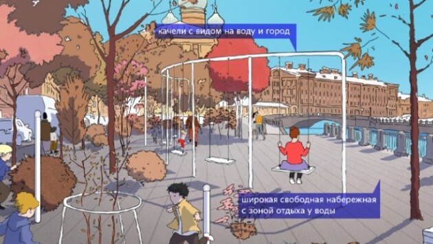 Варламов и Кац разработали проект преображения набережной канала Грибоедова с суженной проезжей частью, качелями и пирсом