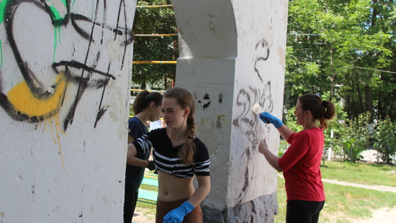 Анапчане готовят к реконструкции уникальный детский городок (видеорепортаж) Вчера, 18 мая, в 12 микрорайоне Анапы прошел не совсем обычный субботник. Эпицентром событий стал уникальный детский городок на улице Стахановской. Участие в трудовом десанте приняли, главным образом, молодежь: мамочки с детьми, студенты, школьники. Ну и, конечно, местные активисты-тосовцы, которые всерьез решили вдохнуть вторую жизнь в городскую достопримечательность. Тот факт, что это действительно достопримечательность, сомнений ни у кого не вызывает. Стационарный детский городок с белоснежными воротами, башенками, горками и арками был построен 32 года назад по проекту Юрия Рысина – ныне главного архитектора Краснодарского края. И все эти десятилетия сей масштабный образчик советской архитектуры был любимым местом игр не одного поколения юных жителей 12 микрорайона. Сегодня первые мальчишки и девчонки, игравшие на этих горках в «войнушку», приводят сюда уже своих детей и даже внуков! Да, все эти годы общественники микрорайона, как могли, старались поддерживать городок в порядке: подбеливали, убирали мусор, траву. Увы, не дремали и вандалы. Их стараниями городок сегодня выглядит печально: белые стены исписаны неприглядными надписями, рисунками, каракулями. Внутри башенок, на лестницах – мусор и грязь. Как рассказала корреспонденту «АЧ» координатор ТОС округа «Восточный» Наталья Ключникова, этой весной активисты округа решили своими силами начать ремонт городка. Первый субботник провели сразу после празднования Великой Победы, 10 мая. Но быстро поняли, что простой уборкой делу не поможешь: для основательной реконструкции потребуется и техника, и дополнительные материалы. Надо сказать, городские власти оперативно отозвались на инициативу общественности. Глава города-курорта Юрий Поляков, выехав на место, оценил и уникальность объекта, и масштаб предстоящих работ. И сразу же дал поручение своему заместителю Анжелике Бузуновой помочь активистам привести исторический детский городок в порядок, а прилегающую территорию облагородить. Жители ждать не стали, а решили подготовить плацдарм для ремонта, для чего и вышли на очередной субботник. Вооружившись шпателями, участники субботника снимали верхний слой побелки. Другие подметали, сметали мусор с горок. Самым юным участником трудового десанта стал, конечно же, 4-летний Влад Гогунский, который пришел на субботник вместе с мамой и папой. Надев «перчатки и очки супергероя», он помогал папе Руслану очищать стены. Для мальчугана эта работа – пока просто увлекательная игра. А вот школьники Слава Бегашев и Сергей Клевцов, которые старательно орудовали вениками, сметая известку, пришли на субботник уже осознанно. Свое желание поработать школяры объяснили так: – Мы и на прошлый субботник выходили. И сегодня, как только увидели из окна, что все собираются, оделись и пришли. Мы хотим, чтобы было чисто в нашем дворе, чтобы все дети могли играть с удовольствием. Сразу после посещения объекта глава города-курорта поручил главному художнику Анапы Ольге Локтенко подготовить эскизы обновленного детского городка. Не остались в стороне и общественники, которые предложили свою концепцию. – Когда одна из наших активисток Анастасия Селеменева в нашей группе в Интернете попросила помочь с идеями, мы начали активно об