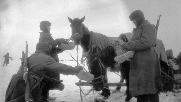 В общедоступных архивах есть фотография с подписью «Советский солдат скармливает лошади трофейную немецкую обувь». Само фото не очень четкое, и рассмотреть, какими именно сапогами или ботинками кормят лошадь, сложно. То, что держит в руках один из солдат, похоже на пучок соломы. Может быть тот, кто оставил подпись, попросту ошибся? Караульные боты и их «заменитель» Дело в том, что одним из элементов зимнего обмундирования немецкого солдата были караульные боты. Эта довольно нелепо выглядящая обувь представляла собой большие войлочные валенки на толстой деревянной подошве. Они надевались прямо поверх сапог и, несмотря на свой смешной вид, неплохо защищали от морозов. Алексей Исаев в своей книге «Сталинград. За Волгой для нас земли нет» упоминает, что советских солдат подобные трофейные боты заставляли хохотать до слез. Но еще смешнее оказались их «заменители».[С-BLOCK] Так как изначально Германия не готовилась к затяжной войне, то зимнего обмундирования было недостаточно. Поэтому многие немецкие солдаты, пытаясь уберечься от обморожения, использовали подручные средства. Многие умельцы изготавливали караульные боты из соломы. Стебли переплетались в жгуты, а затем жгуты скреплялись друг с другом. Получалось что-то типа высоких лаптей или больших вязаных носков. Подошва такой обувки прокладывалась газетами или все той же соломой, что делало ее более прочной и лучше защищало от холода. Дома и стены помогают Конечно, от холода страдали и советские солдаты. Но, во-первых, они были более привычны к местному климату, а во-вторых, массово использовали валенки. Эта обувь была не только в армии, но и активно производилась местными жителями. Кроме того, большие партии валенок в качестве помощи отправляли на фронт из Тувы (бывшей в ту пору независимым государством) и Монголии. Так что недостатка в теплой обуви советские солдаты – в отличие от немецких – практически не испытывали. Кстати, валенки были одним из желанных трофеев солдат и офицеров вермахта. Паулюс в своих дневниках вспоминал, что в период Сталинградской битвы его солдаты, жутко страдавшие от холода, стали похожи на советских, так как массово и вопреки уставу использовали трофейную одежду и обувь. А советские солдаты немецкую трофейную обувь, изготовленную из соломы, использовали по прямому назначению – скармливали лошадям.[С-BLOCK]