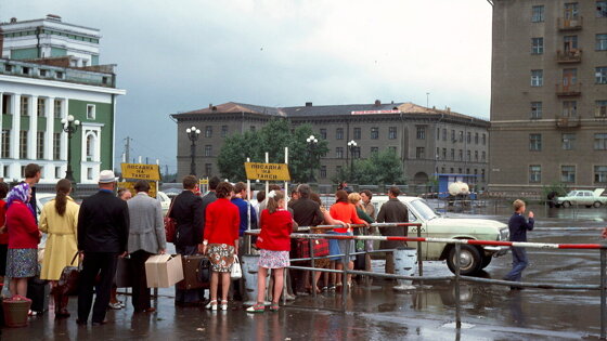 Билетные кассы Сегодня, когда почти все можно купить с помощью смартфона, уже трудно представить, что когда-то заполучить билеты на самолёт можно было буквально в нескольких точках города (кроме вокзалов и аэропортов, разумеется). Самые известные билетные кассы находились на улице Советской (напротив Вознесенского собора), и там, разумеется, всегда были очереди. Ситуация обострялась в период летних отпусков. Преподаватель Александр Ивлев вспоминает: «В одной руке сумка, в другой зажаты деньги, распластан по стеклу касс, как камбала по дну, только вертикально. Дёргаться нельзя, потому что бесполезно. Приставным шагом, по стенке, сантиметр за сантиметром, как только на мгновение ослабевает давление, в сторону окошечка с кассиром». Пункты приема макулатуры Сбор и обработка вторсырья были поставлены в СССР на широкую ногу, благо у государства всегда было что-то (практически всё), что можно было на это вторсырье обменять. Предприниматель Дмитрий Борисов вспоминает, что записывался в пункт приема макулатуры в начале улицы Горького с ночи. «С одноклассником я ходил по подъездам, благо кодовых замков ни на одном не было, звонили и спрашивали. Потом, когда на этом павильоне "Стимул" появлялся анонс с названием "макулатурной" книги, записывались с вечера на листик — и к открытию был шанс сдать макулатуру, получить типа сертификата и марки-наклейки согласно сданным кг. Нужно было набрать марок на 20 кг — и тогда можно было доехать до спецотдела на Владимировской и купить по номиналу вожделенную книжку. Типа "Одиссея капитана Блада" или подобную». Конечная остановка автобуса В это трудно поверить, но автобусы в СССР ходили еще хуже, чем теперь. И обычно на остановке общественного транспорта этот самый транспорт брали штурмом, по принципу «уедет только сильнейший». Однако существовали немногочисленные маршруты, куда пассажиры были готовы смиренно стоять в очереди. Самой дисциплинированной была очередь на конечной маршрута № 8 в Академгородок. В очереди существовало неписаное правило, согласно которому сначала в автобусе сидячие места занимали те, кто стоял впереди, а потом могли уже зайти все желающие (чтобы ехать стоя). «У нас родственники жили в Академе, и мы часто ездили к ним на праздники. Очереди были адские, мы в них иногда стояли по часу и больше — не хотели ехать стоя», — вспоминает Наталия Дмитриева, — отдельная очередь была на такси, чуть поменьше, чем на 8-ку, но была. Иногда у папы не выдерживали нервы, и мы ехали в Академ на такси». Очередь с родителями Отдельным жанром можно было считать очереди, в которых дети стояли с родителями (или даже вместо них). Присутствие ребёнка было нужно по двум причинам. Во-первых, многие дефицитные товары продавали ограниченно — «по два в одни руки», так что к прилавку старались привести максимум этих самых рук. Кроме того, пока ребенок стоял в одной очереди, родители могли делать то же самое в другой. Эта правило «по одной штуке в руки» приводило к вовсе комичным практикам. Дарья Адамович рассказывает, что во время прогулок с мамой в районе ГУМа стоящие в очередях женщины просили девочку «в аренду», чтобы купить не один чайник, а два. «И так было несколько раз. Я была внучкой, дочкой, сестрой и, главное, ничего не просила. Благодаря мне покупалась одежда, бытовая техника и т. д., и все в двойном экземпляре»