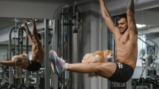 Пушистый тренер: в кыштымском фитнес-клубе устроили фотосессию с котами и атлетом
