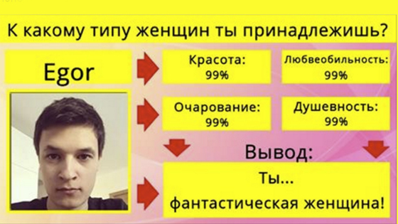 На какого хомячка ты похож? Кто ты из героев фильма «Бесславные ублюдки»? Попробуй задать этот вопрос прохожему, и в лучшем случае он вызовет к тебе санитаров. Но все меняется, если ты сидишь на работе в Интернете и тебе нужно чем-то убить время. Вот тогда ты и начинаешь проходить все эти идиотские онлайн-тесты. А твои френды их читают и тоже начинают иногда проходить. То, что это бесит нормальных людей и засоряет им френд-ленту и мозг, — полбеды. Когда это тебя останавливало? Но, оказывается, некоторые тесты могут нанести тебе существенный вред и материальный ущерб. Татьяна Сидорина, аналитик интернет-контента в «Лаборатории Касперского», назвала пять проблем, которые ты можешь получить с результатами тестов или вместо них. Спам Если в конце тестирования тебя просят оставить свой e-mail или номер мобильного, твои данные могут пополнить многочисленные рекламные базы. И дальше ты будешь регулярно получать много нежелательных писем, СМС-сообщений и звонков. Поэтому никогда не указывай свою почту и телефон на малознакомых ресурсах. Если уж совсем не терпится узнать результат, пользуйся сервисами, предоставляющими одноразовые почты и номера сотовых. Списание денег После прохождения теста часто предлагают отправить эсэмэску на короткий номер для получения результата. И многие отправляют, так как очень обидно ответить на 150 дурацких вопросов, но так и не выяснить, кто же ты из трех поросят, черт возьми. Пусть уже скажут, ты весь извелся! А тесты специально делают такими длинными, чтобы тебе было жаль потраченного времени и ты отправил жуликам СМС. Вряд ли ты получишь заветный ответ, зато с мобильного счета вдруг исчезнет крупная сумма, а для полного счастья тебя подпишут на букет платных услуг. Запомни: отправлять СМС можно только в том случае, если ты абсолютно уверен в ресурсе, который предоставил сей тест. Если это это, допустим, сайт журнала MAXIM, беспокоиться не о чем. В остальных случаях почитай отзывы, прежде чем отдавать все свои деньги. А мы у тебя денег не попросим, мы тебя любим не за это. ЗловредЕсли ты не послушался Татьяну Сидорину и отправил врагу свою почту или номер мобильного, результаты теста могут прислать в виде вредоносной ссылки или документа. Не менее опасными могут быть ссылки, расположенные рядом с тестом. Кликнув на них случайно, можно скачать вредоносное ПО или оказаться на фишинговом сайте. Если это уже случилось, запусти полное сканирование устройства на наличие вирусов. Установка нежелательных расширений После прохождения теста тебя могут перенаправить на сайты, предлагающие установить вредоносное расширение при попытке загрузки файла. В результате данное расширение получит права на чтение всех данных в браузере, что в перспективе позволит мошенникам заполучить все твои введенные пароли, логины, данные банковских карт и другую конфиденциальную информацию. Подробно об этом написано здесь. Поэтому никогда не устанавливай подозрительные расширения браузера. А при обнаружении такового немедленно удали его в разделе настроек браузера и измени все пароли посещаемых веб-сайтов. Особенно те, которые касаются онлайн-банкинга. Фишинг Еще один способ лишиться всех средств на счете — пройти опрос об удовлетворенности работой какой-то компании. Методика злоумышленников простая: они рассылают сообщения с просьбо
