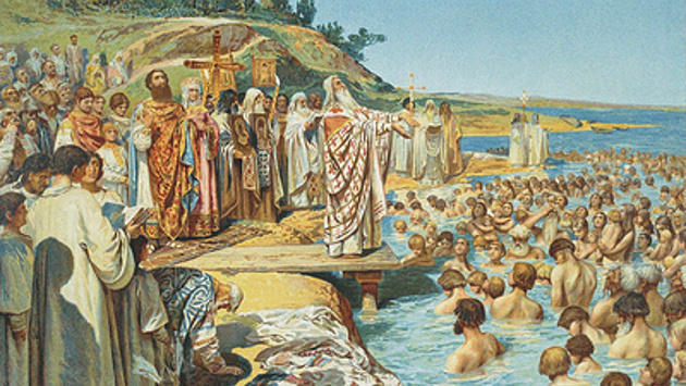 Христианству в России исполняется уже 1031 год, а вопросов у историков остается множество. Достаточно сказать, что неизвестно не только точное время крещения — праздник привязан ко дню памяти князя Владимира (15 июля по юлианскому календарю), — но и место крещения, ибо византийский Херсонес (летописный Корсунь), где, согласно легенде, князь обратился в христианство, располагался далеко от Русской земли. Где крестился князь, вернувшийся из Корсуня на Русь, — в Киеве или Василёве — во времена составления Начальной летописи (Повести временных лет, на рубеже XI и XII веков) говорили по-разному. Таково свойство фольклорной памяти, а письменных свидетельств о крещении Руси, которые могли бы всерьез корректировать Повесть временных лет, практически не сохранилось. "Фотиево крещение" Странным выглядит и молчание византийских источников о крещении Русской земли. Это обстоятельство традиционно пытаются объяснить историографическим мифом, созданным византийским патриархом Фотием за сто с лишним лет до крещения Владимира. Патриарх стал свидетелем первого похода руси — дружины, едва не взявшей в 860 году Царьград "на копье". Рейд неизвестной дотоле народности русь потряс не только Византию: в Риме, с которым Константинополь соперничал из-за первенства в церковной иерархии, не могли не позлорадствовать по поводу нашествия иноплеменников-язычников и назвали его проявлением Божьего гнева. Фотий ответил посланием, где утверждалось, что русь была настолько потрясена увиденным в Византии, что приняла христианство, позвав к себе епископа. Правда, место, куда отправился приглашенный пастырь, осталось неназванным, и никаких следов христианства у руси в IX веке не обнаружено. Но, по мнению сторонников раннего "Фотиева крещения", это объясняет, почему Византия не обратила должного внимания на принятие христианства Владимиром по прошествии ста с лишним лет. Упорствующий язычник вещий Олег Тем не менее христианство действительно было известно на Руси задолго до Владимира и было связано с походами на Царьград. После победоносного похода Олега в 907 году (также не упомянутого византийскими источниками, как и крещение 988 года) греки пытались поразить князя церковной красотой, но Олег остался упорствующим язычником. Ситуация изменилась через 30 лет, со следующим поколением русской элиты: при князе Игоре в 940-е годы были совершены не вполне удачные походы на Византию, но выгодный для Руси мир был все же заключен в 944 году. Приносившие клятву соблюдать мир русские дружинники разделились: язычники клялись перед Перуном, христиане — в церкви Ильи. Летописец, переписавший договор 944 года в начале XII века, думал, что речь идет о современной ему киевской церкви. Энтузиасты, верящие в "Фотиево крещение", утверждают, что уже в год договора в Киеве стояла церковь. Однако исследование дипломатического протокола договоров показало, что речь шла о константинопольской дворцовой церкви. Русские дружинники, служившие со времен Олега в Царьграде, привыкали к обычаям греков-христиан: так формировалась варяжская гвардия, доверенная стража самого императора. Хитрость княгини Ольги Почти сказочный сюжет о хитрости, помогающий герою в сложной ситуации, связан в летописи с визитом в Царьград вдовы и наследницы Игоря — княгини Ольги, которая хотела принять крещение от самого и