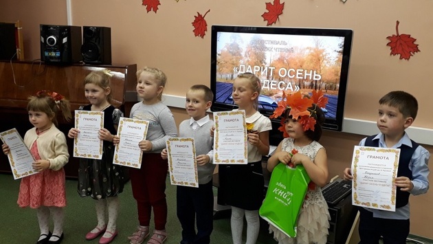 Поэтический фестиваль «Дарит осень чудеса» прошел в Детской библиотеке № 141 «Лукоморье в Царицыно» в среду, 23 октября. Об этом журналисту Объединенной редакции интернет-изданий Южного административного округа столицы сообщила заведующая читальней Марина Потапова. Конкурс чтецов собрал 23 юных мастеров ораторского искусства — воспитанников дошкольного отделения школы № 1466 имени Надежды Рушевой. Малыши подготовили стихотворения Александра Пушкина, Николая Некрасова, Федора Тютчева, Константина Бальмонта, Агнии Барто и Ларисы Рубальской; и все — об осени. — Строгое жюри было вмиг очаровано выразительностью и артистичностью юных чтецов, — рассказала Марина Потапова. — Настолько, что в ходе фестиваля была добавлена специальная номинация для особо отличившихся ребят: «Приз зрительских симпатий». Обладателями такой награды стали те, кто был очень близок к призовым местам, но совсем чуть-чуть не добрал до того, чтобы все же стать финалистом: Дарья Горянова и Катя Епарова. По итогам прошедших поэтических баталий члены жюри с большим трудом определили победителей: ими стали Мила Путинцева, Аркадий Панов и Алиса Шергина. Дети получили в подарок специальные призы от библиотеки и дипломы финалистов. Остальные ребята тоже не остались без внимания — им вручили грамоты за участие. Фото: Детская библиотека № 141 «Лукоморье в Царицыно»