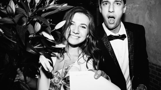 Отношения фотографа нашего журнала Данила Ярощука и ресторанного обозревателя, главреда портала Restorating.ru Саши Поповой начались еще в Кемерово 10 лет назад. О том, как история про школьную дружбу, юношеские ухаживания и первую любовь превратилась в романтичное предложение и свадебную вечеринку, пара рассказала в рамках колонки для «Собака.ru». Предложение в Сан-Марко Мы прошли огонь и воду, моря и горы, переезд в другой город и ремонт – все, что пугает молодые пары. Вместе всегда было интересно, весело и естественно — закрепление этих параметров брачным свидетельством не то чтобы требовалось. Все изменилось одним августовским утром в Венеции. Мы отправились к Сан-Марко до того, как встанет солнце и приедут автобусы туристов. Ничего возвышенного — хотели сделать неэкскурсионные фотографии на пустой площади. Я танцевала, Данил снимал меня с разных ракурсов, дело дошло до кадра снизу — и вот он опускается на колено, протягивает кольцо-моей-мечты, специальным трогательным голосом произносит «Ты выйдешь за меня?». А у меня вообще-то плохое зрение, да и предложения спустя столько лет я не жду — приняла за шутку. Хватило несколько секунд, чтобы осознанать и из человека превратиться в облако в платье. Мы сообщали прохожим о своей радости, просили нас фотографировать и отправились завтракать в новом статусе. В меню было только «Беллини» и разговоры предстоящем празднике. За кольцами после патихард На энтузиазме и повышенном романтизме мы придумали себе свадьбу за пару месяцев. Черно-белый дресс-код, тонны блестящих конфетти, бесконечное вино, никаких скатертей и рассадки, ни одной старой пыльной свадебной традиции. Первой покупкой к торжеству стали кольца. Это было смешно: мы пришли в Bulgari нелегким субботним утром в образе подростков, которые вчера пережили какой-то сумасшедший патихард; на нас смотрели так, будто мы зашли погреться. Мы за 10 минут нашли те-самые-кольца и решили, раз шопинг складывается, нужно не сбавлять темп. За две недели образы были полностью собраны. Платье для Саши – удачно найденный ноунейм. Сначала мы ходили по салонам, везде были сотни ослепительно белых, бесконечно кружевных и безупречно пышных нарядов – растерянность и ужас для неподготовленной публики. Потом увидели в сети изображение простого и элегантного платья, которое можно будет надеть не только один раз в жизни — в общем, спасибо современной таргет-рекламе за наши счастливые покупки. Блеска и праздника образу добавили туфли категории «принцессьи» от Jimmy Choo. Для второй — неофициальной — части мы с дизайнером Nina Shterenberg придумали еще менее помпезный наряд невесты — брючный оверсайз-костюм. Данил, который всю жизнь носит джинсы и толстовки, в этот день был образцово-показательным женихом. Изначально мы держали в голове много нестандартных образов, но в Babochka случилось «главное» — костюмчик сел. В итоге жених был классиком с головы до лодыжек: чёрный костюм Fendi решили сочетать с массивными кедами Prada и носками цвета фуксия — в компанию к букету невесты. Дикий дэнс под контрабас и укулеле Музыканты Amelie Trio и Santa Barbara исполняли хитовые каверы на нестандартных инструментах: контрабас, флейта, укулеле. Саша танцевала с папой под What a Wonderful World Луи Армстронга, потом – в облаке конфетти и под аплодисменты была передана (в прямом смысле, прямо из рук в руки) Данилу. Д