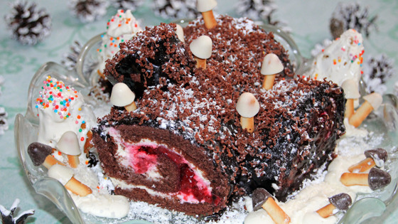 Торт "Рождественское полено", или Бисквитный рулет с замороженной вишней