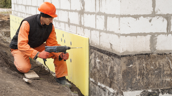 Строители знают, что надежность фундамента можно обеспечить разными способами, отличающимися материалоёмкостью конструкции и величиной трудозатрат. Среди них утепление фундамента – мера, позволяющая реально сэкономить на этапе нулевого цикла. Утепление фундамента - мера, позволяющая реально сэкономить на этапе нулевого цикла В странах Северной Европы основной способ борьбы с вредным влиянием пучинистых грунтов на фундаменты сводится к утеплению грунтов основания. Помимо стен, полов и потолков жилой части дома утепляют цоколи, фундаменты, грунт с внешней стороны дома или с обеих сторон, основание под фундаментами (рис. 1, 2). Рисунок 1. Варианты обеспечения надежности мелкозаглубленного фундамента с применением утеплителя Таким способом создают условия, при которых пучинистые грунты становятся непромерзающими или частично промерзающими, например, до глубины заложения подошвы мелкозаглублённых фундаментов. Дома бывают разные Для рационального использования утеплителей в фундаментных конструкциях и грунтах следует учитывать многообразие строящихся домов. Их можно сгруппировать по следующим признакам: По тепловому режиму (дома для постоянного или сезонного проживания либо с отложенным периодом постоянного проживания); По конструкции цокольной части (бесподвальные дома, с цокольным перекрытием на песчаной подушке, с техподпольем или цокольным этажом); По заглублению фундаментов (бесподвальные дома с незаглублёнными, мелкозаглублёнными и заглублёнными фундаментами, дома с заглублёнными фундаментами при наличии технического подполья или цокольного этажа — под всем домом или под его частью). Когда же следует утеплять фундаментные конструкции и какими должны быть параметры применяемых утеплителей? Утепление цокольного перекрытия бесподвальных домов Для домов сезонного проживания толщину утеплителей рассчитывают по действующим нормам из условия комфортности, а для домов постоянного проживания — из условия энергосбережения. Приведённые ниже расчёты выполнены для климатических условий Московской области. Требуемое минимальное значение полного сопротивления теплопередаче цокольного перекрытия загородного дома исходя из условия комфортности равно 1,52, а из условия энергосбережения — 2,8 м² ⋅ С/Вт. Зная конструкцию цокольного перекрытия и коэффициенты теплопроводности материалов, можно определить необходимую толщину утеплителя. В таблице 1 приведены результаты расчётов некоторых утеплителей при следующих исходных данных: цокольное перекрытие — монолитная ж/б плита толщиной 150 мм; пол — из шпунтованной доски (35 мм); подполье — либо вентилируемое, либо непучинистая песчаная подушка толщиной 0,8 м. Таблица 1. Толщина постоянного утеплителя в цокольном перекрытии, см Таблица 1. Толщина постоянного утеплителя в цокольном перекрытии, см Утепление под зиму Нередки случаи, когда окончание изготовления монолитной плиты цокольного перекрытия на песчаной подушке приходится на начало зимы. При промерзании пучинистого грунта в отсутствие пола и утеплителя под действием сил пучения может произойти повреждение плиты. В этом случае под плитой можно заранее уложить постоянный утеплитель или уложить его сверху плиты как временный. Толщину утеплителя рассчитывают из условия, что промерзание грунта должно быть не 