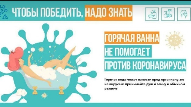 Специалисты утверждают, что принятие горячей ванны не обезопасит от инфицирования коронавирусом. Более того, такие действия могут навредить здоровью. Некоторым людям имеющим заболевания, такие как гипертония, диабет, проблемы с сердцем, принятие горячих ванн противопоказано. Для того, чтобы уберечься от коронавируса, необходимо соблюдать правила личной гигиены, чаще мыть руки с мылом, воздержаться от посещения людных мест. Прежде чем предпринимать какие-либо меры, проконсультируйтесь с врачом. По вопросам же, связанным с профилактикой коронавируса и угрозой его распространения, обращайтесь на телефон горячей линии: +7 (495) 870-45-09.