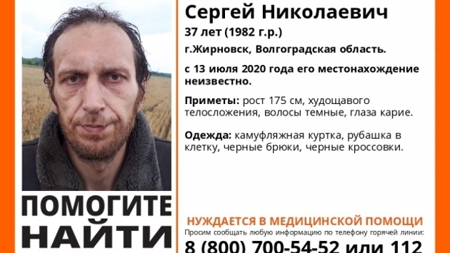Волонтеры ищут жителя Волгоградской области 1982 года рождения Сергея Молтянинова. Мужчине необходима медицинская помощь. Рост пропавшего - 175 см, Сергей худощавого телосложения. У него карие глаза и темные волосы. Исчез Сергей в камуфляжной куртке, был одет в рубашку в клетку, черные брюки, а также черные кроссовки. Если вы что-то знаете о местонахождении 37-летнего Сергея из Жирновского района, звоните 112 или 8 (800) 700 54 52. Марина Поляничко. Фото: vk.com/la_volgograd