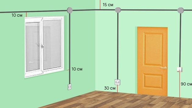Правильная разводка электропроводки в квартире — основа уюта и благополучия. Поэтому так важно точно знать, где проложить проводку, а где разместить розетки и выключатели. Иначе потом будет проблематично гвоздь вбить, не говоря уже о комплексном ремонте. Да и распутывать провода многочисленных удлинителей тоже не хотелось бы… Идеальный вариант — продумать расположение электроприборов еще на этапе проектирования. И в этом смысле, конечно, очень важно иметь план расстановки мебели (чтобы планировать розетки там, где будут подключаться приборы). Что нужно учитывать — расскажем в этом материале. Правильная проводка Правильно прокладывать электропроводку по горизонтальным и вертикальным линиям, независимо от того в кабель-канале или под штукатуркой. Но всё же нередко можно встретить проводку, проложенную кратчайшим путем, произвольно. На такое ухищрение идут по нескольким причинам: из-за экономии электропроводки, незнания правил электромонтажа, небрежности электромонтажника, с целью сэкономить время и силы. Почему так важно соблюдать геометрию прокладки электропроводки? Неправильно смонтированная электропроводка повышает риск однажды обесточить часть линии. Сделали ремонт, произвели в доме перестановку мебели, на образовавшемся пространстве решили повесить новую картину, сверлим и попадаем точно в то место, откуда вылетают искры. Такой сценарий не придуман, это обычное явление. требуют, чтобы там, где установлена розетка или выключатель, проводка опускалась строго по вертикали к электроустановкам. Если в дальнейшем понадобится повесить картину, риск повредить электропроводку сводится к нулю. Вертикально проложенные провода должны быть удалены от дверных и оконных проемов не менее чем на 10 см. Вблизи отопительных труб прокладка должна осуществляться на расстоянии не менее 15–20 см, при перпендикулярном пересечении электропроводка должна быть защищена асбестовыми прокладками. Параллельная прокладка вблизи трубопроводов с горючими веществами (газ) производится на расстоянии не менее 40 см. Следить нужно также за острыми углами бетона, металлическими частями и усадкой здания. На какой высоте от основания потолка закладывается электропроводка? Минимум 15 см (зависит от высоты потолка). Принцип такой: если планируется установка подвесного или натяжного потолка, провод должен остаться в доступной зоне. Если новый потолок от основного потолка будет опущен на 30 см в квартире с высокими потолками, электропроводку стоит проложить на расстоянии 40 см. Учитывать такое правило нужно даже в том случае, если ты на данный момент не планируешь монтировать подвесные потолки. Правила размещения выключателей Выключатель основного освещения размещают возле двери на высоте 75–90 см. При выборе высоты учитывайте средний рост взрослых членов семьи — всем должно быть удобно нажимать на клавишу, отведя опущенную руку в сторону. Высота 80 см — оптимальная практически для всех. Выключатель не должен быть закрыт мебелью или открытой дверью, его размещают с той стороны, где располагается ручка закрытой двери. Выключатели в ванной комнате, туалете и кладовой размещаются в коридоре, а в жилых комнатах, кухне и коридоре — внутри помещений. Выключатели дополнительного освещения (декоративной или комфортной подсветки) можно расположить на