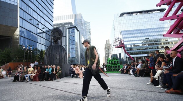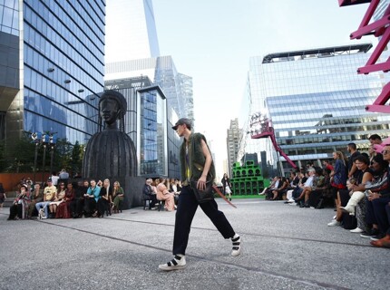 Кожаные куртки и архивные обложки Interview на десятиметровой высоте – как прошел показ Coach