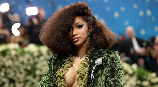 Рэперша Карди Би посетила Met Gala в пальто с глубоким декольте