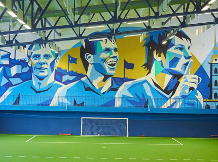В академии «Зенита» открыты школа и крытый манеж. На территории размещены муралы с Аршавиным, Малафеевым, Радимовым, Желудковым и другими воспитанниками