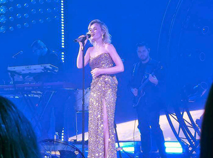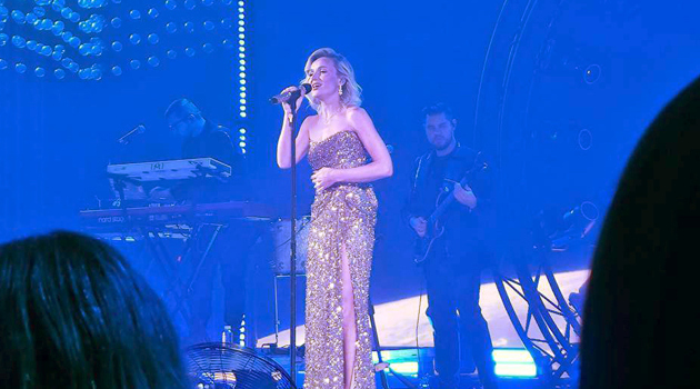 Полина Гагарина вышла на сцену в золотом платье с разрезом до бедра