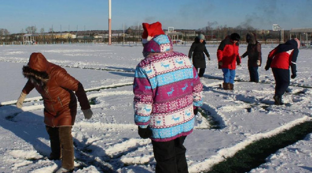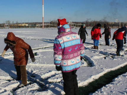 Жители Шимановска нарисовали гигантскую снежную открытку на реке