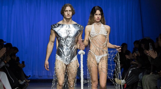 Шейк в коконе и дочь Мосс в латексных колготках: как прошел показ Richard Quinn