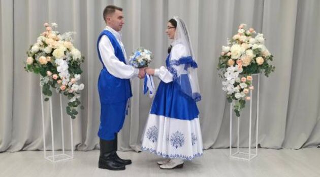 Церемонию бракосочетания в русском народном стиле провели сотрудники ЗАГС в рамках фестиваля национальных свадеб