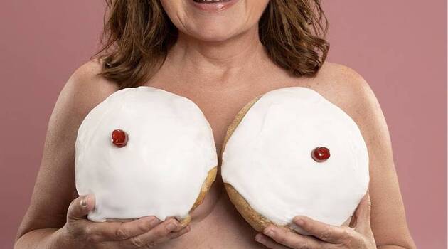 65-летняя журналистка прикрыла голую грудь булками на фото