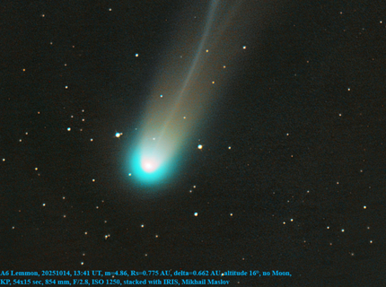 Астроном запечатлел яркую осеннюю комету Lemmon под Искитимом