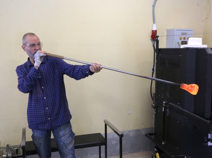 В стеклодувной мастерской Свияжска бутылки превращают в игрушки и украшения