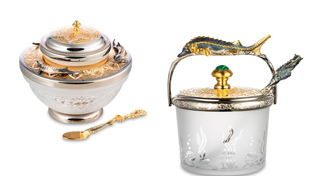 Эффектная подача от российской мастерской: икорницы для новогоднего стола из матового стекла с латунью и серебром