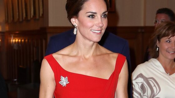 Встречали герцога и герцогиню Кембреджских члены местной общины Heiltsuk First Nations. Почетным гостям показали специальное шоу и подарили подарки - снова для их маленьких детей, которых они также взяли в тур. Кейт и Уильям также прогулялись по заповеднику Дождевой лес Великого Медведя, который является уникальным уголком первозданной природы. На герцогине были куртка Holland and Holland, рубашка Topshop, джинсы Zara и сапоги Penelope Chilvers. Вечером Кейт Миддлтон переоделась в красное платье Preen. В нем она появилась на торжественном приеме в Доме Правительства Британской Колумбии. Завершали образ бриллиантовая брошь в виде кленового листа, крупные серьги и замшевые красные лодочки. Фото: Getty, Global Look Press
