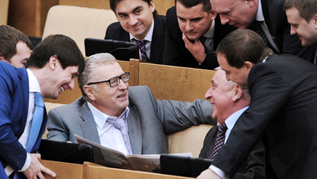 Владимир Жириновский руководитель фракции ЛДПР «Профессор принимает экзамен у паренька из провинции, а он не знает ни один ответ. Но преподаватель сжалился и задает ему самые простые вопросы, чтобы хоть тройку поставить: Ну, скажите, в каком году Великая Октябрьская революция была? — Не знаю. — Кем были Маркс и Энгельс? — Не знаю. — Кто такой Ленин? — Не знаю. — Да откуда ж ты такой взялся-то? — Из Урюпинска. Профессор мечтательно смотрит в окно и говорит: «Эх, бросить бы всё, да уехать в Урюпинск». Сергей Миронов руководитель фракции «Справедливая Россия» «Армия. Приезжает в часть генерал с проверкой. Всё посмотрел, решил проверить, как солдаты питаются. Приходит в столовую. Солдаты едят. Генерал спрашивает: Как еда, солдатики, хватает? — Хватает, товарищ генерал, даже остаётся! — А что делаете с тем, что остаётся? — Доедаем, даже не хватает!» Сергей Боярский первый зампред Комитета Госдумы по информационной политике, информационным технологиям и связи («Единая Россия») «Встречаются два одноклассника — бизнесмен и музыкант. Бизнесмен при полном параде, музыкант полуголодный, почти нищий. Бизнесмен спрашивает: «Ну, как ты, дружище? Слышал, что ты группу создал, она такая крутая, у тебя такая песня классная, а я всё в своем банке сижу, бумажки перекладываю, будь оно всё проклято. Я так рад за тебя! Так рад, что ты со школьной скамьи в музыку влюбился и пришёл к своей мечте». Тот не понимает: «Подожди-подожди, а откуда ты знаешь, что я музыкант?» «Так я ж твой альбом купил, он мне так нравится». «Ааа, блин, это ты купил…» Борис Пайкин глава Комитета Госдумы по физической культуре, спорту, туризму и делам молодежи (ЛДПР) «Задачка-шутка. Надо за одну минуту назвать 50 названий улиц Санкт-Петербурга, только без подготовки и без шпаргалки. А я это делаю всего лишь за полминуты. 27 линий Васильевского острова, 10 Советских улиц и 13 Красноармейских. Всё оказывается просто»