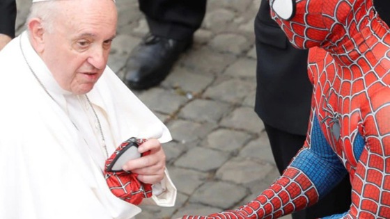 В эту среду папа Франциск встретился с одним из главных героев вселенной Marvel. Икона в мире комиксов заняла место в VIP-секции и ждала появления папы в своём красно-синем костюме. В конце еженедельной аудиенции, которая проходит во внутреннем дворе улицы Сан-Дамасо, представители разных миров пожали друг другу руки. На память о знаменательном дне Человек-паук подарил понтифику свою маску.